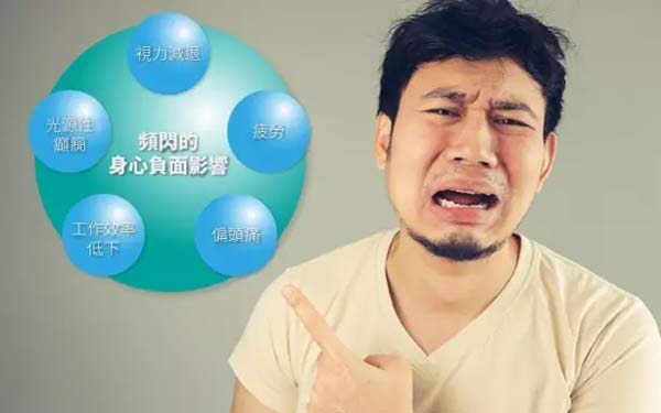 频闪对人体健康的危害影响是一个长期作用、慢性累积的过程。目前研究结果发现,频闪给人带来的影响主要有以下几方面: