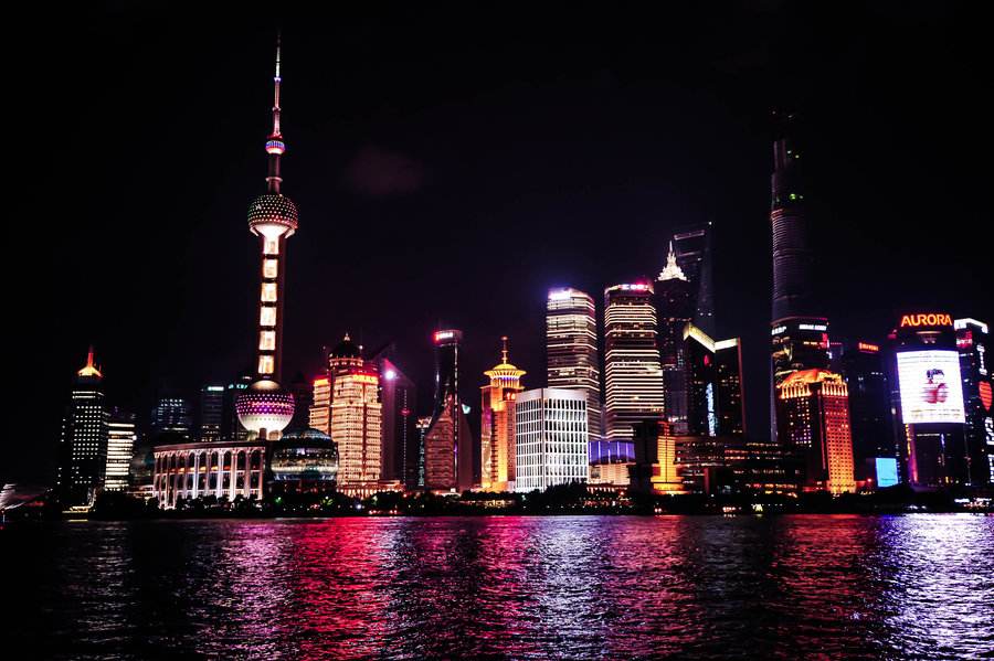外滩是上海的象征,比邻黄浦江,夜色渐渐暗下来,江风徐徐吹来,外滩像是接到了某种指令似的,一场“光影盛宴”点亮了整个外滩的建筑,东方明珠、世贸大厦等处处可见灯火璀璨、流光溢彩。绚丽的霓虹灯凸显着东方明珠的辉煌,黄浦江上耀眼的光芒却有一种近代的沧桑。弄堂中老上海人将油灯点亮,星星点点照亮长廊,临街的商铺里是闪亮的衣裳。到夜晚,一幅幅缤纷的“画卷”呈现在世人眼前。 这些璀璨绚烂的光亮永不熄灭交替的闪现,不停的铸造着上海独特的城市魅力。