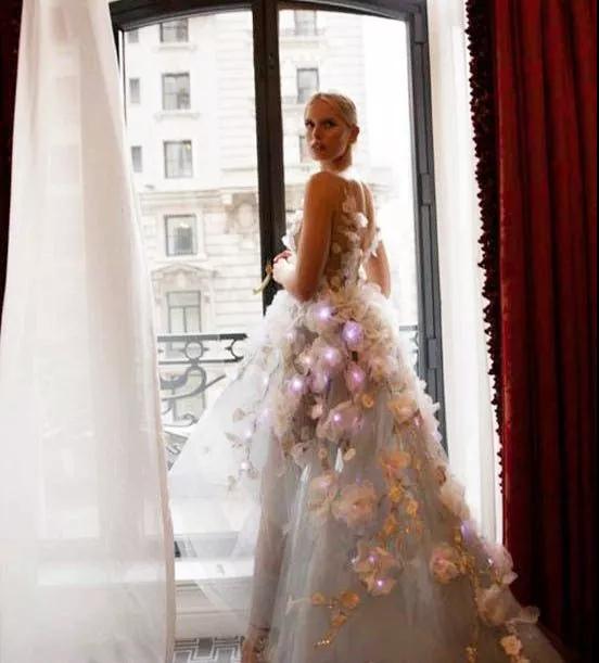 超模Karolina Kurkova身穿的缀满LED的花裙子