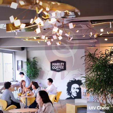 假日期间,谁都想拥有一个舒适、惬意的环境。即便置身人声嘈杂的闹市,也总希望能保持一份超脱物外的思绪与品味。为了营造美妙灵动的休闲氛围,这家Marley咖啡店采用了OLED照明,将两个53x55mm规格的OLED照明面板粘合起来,组成一个类似蝴蝶翅膀的OLED灯。