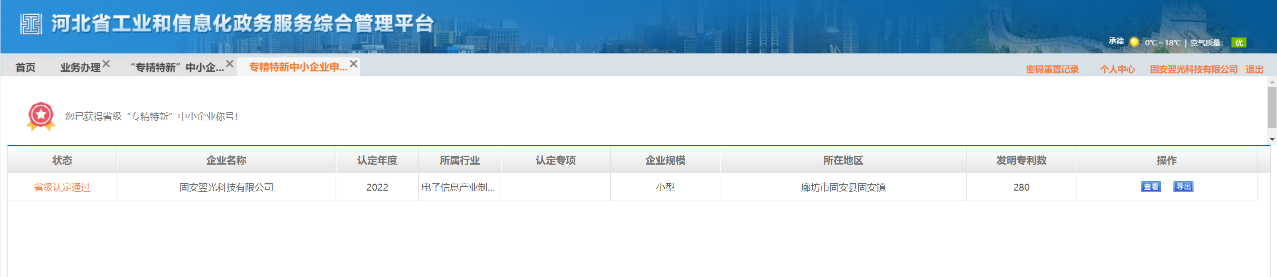 喜讯:翌光科技顺利通过河北省“专精特新” 中小企业认定