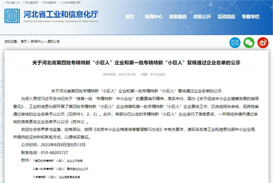 专精特新“小巨人”第四批公示通知