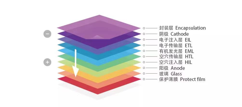封装层:通常采用玻璃材质或者金属箔,对有机功能材料进行封装保护,避免外界水氧的侵蚀。