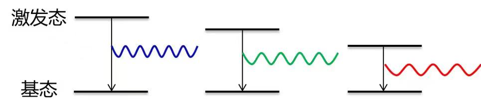 发光的颜色取决于发射光子的能量,即激发态和基态的能量差,能量差越大,发射的光子能量越大,发光颜色越往短波方向移动。