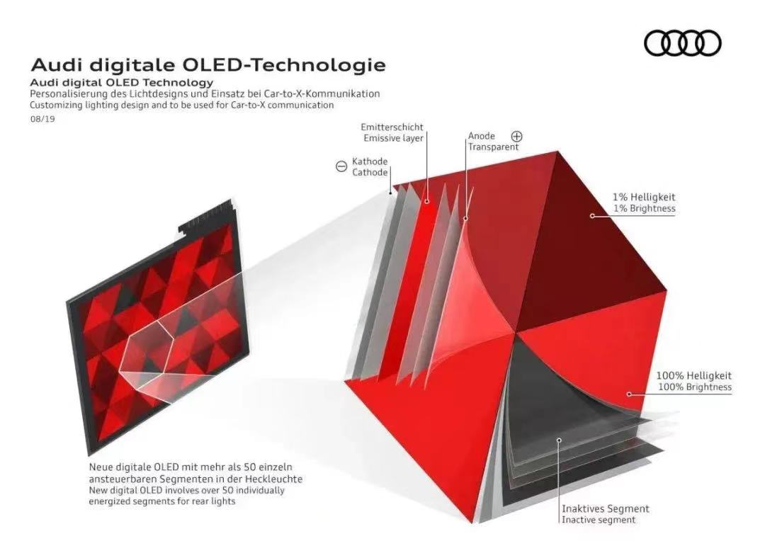 数字化OLED是目前在尾灯中体现个性化以及实现车联网通信最灵活的显示技术。