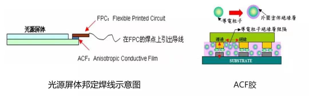 通过ACF各项异形导电胶通过绑定设备将柔性电路板(FPC)绑定到屏体引线区,从而实现与外部的电连接。