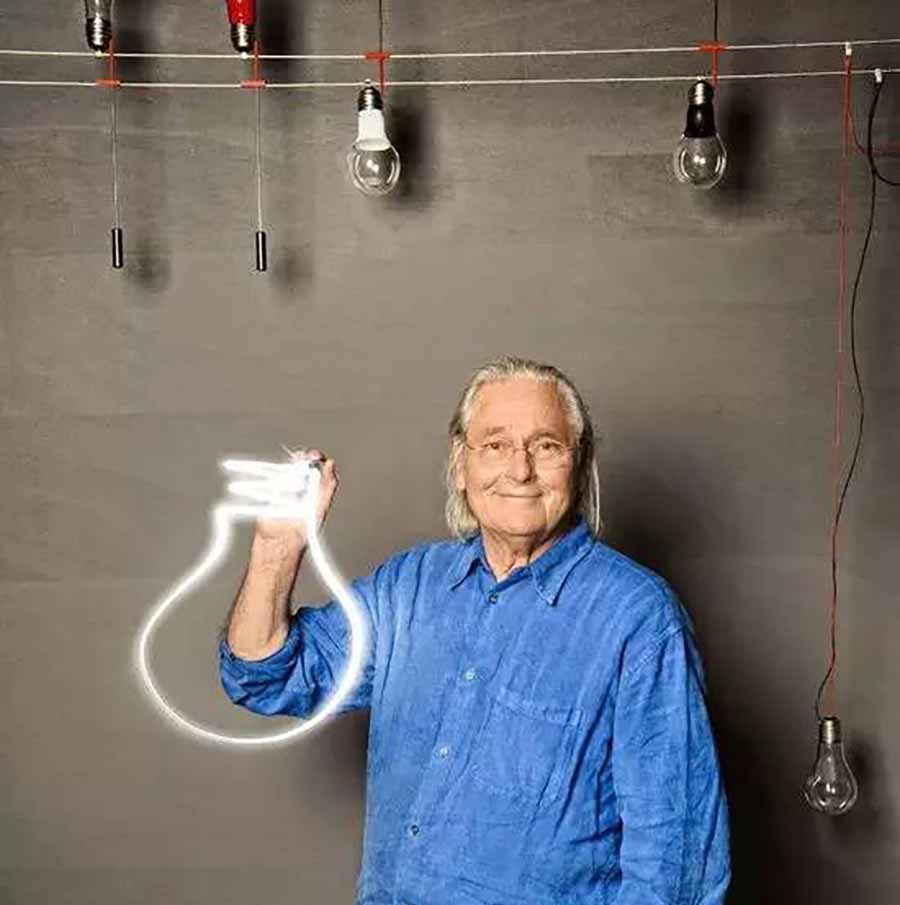 这位就是德国著名灯具设计师Ingo Maurer,自1966年开始,他就尝试各种新的表现方式,用一次又一次冒险的方式、天马行空的创意,创作了一盏又一盏极富创造力的作品。