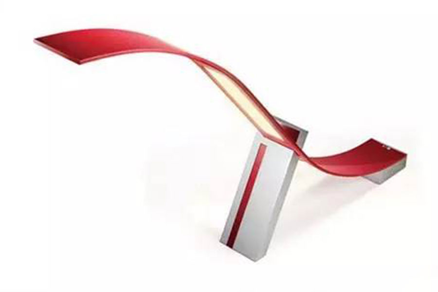这款台灯是由加拿大多伦多OTI Lumonics公司的工程师开发而成,灯壁与底座的造型相互呼应,侧面看可以明显看到整个设计的轻盈线条感。灯壁部分由金属材质构成,融合了电容性触摸技术,可以触碰灯体的任意部位,都可完成开关及三种亮度的调节功能。台灯底座嵌入了无线充电技术,可以把手机平放于底座上进行充电。