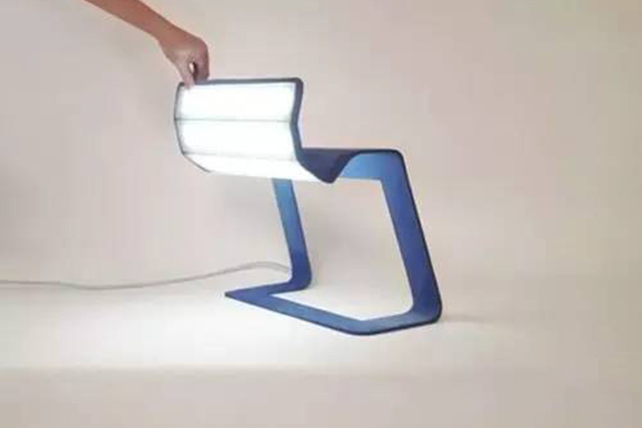 此后,无论是灯具品牌还是灯具设计师都开始了在OLED照明产品的设计尝试。早期的OLED台灯设计受制于OLED照明面板的发光效率,由于照度、发光面积等技术原因,使得OLED照明在台灯设计上呈现出来的多是概念型设计作品。这一时期的创新突破在于OLED柔性技术的发展,使得OLED光源的设计一下子从二维转移到了三维的设计层面上。
