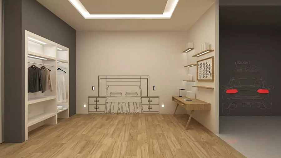 接着走进开放式的家用展示空间,从客厅、餐厅到卧室呈现出了全方位的温馨。轻薄OLED装点的墙面与镜面,散发出柔和自然的光线,放眼望去,没有一丝刺眼之感,营造出了一种舒适自然的家居氛围。轻轻点开书桌上的阅读灯,再也不用担心蓝光危害可能对眼睛造成的伤害,可以静享书中的美妙。